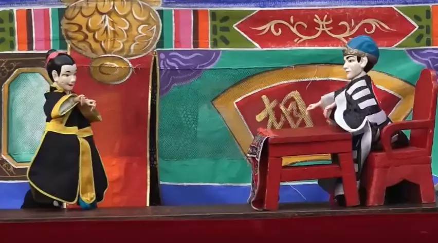 這齣傳統偶戲改編自古老神話,講述真武大帝座下的金童、玉女因動凡心而下凡,化身為周乾與桃花,從神界侍者到凡間情感糾葛,